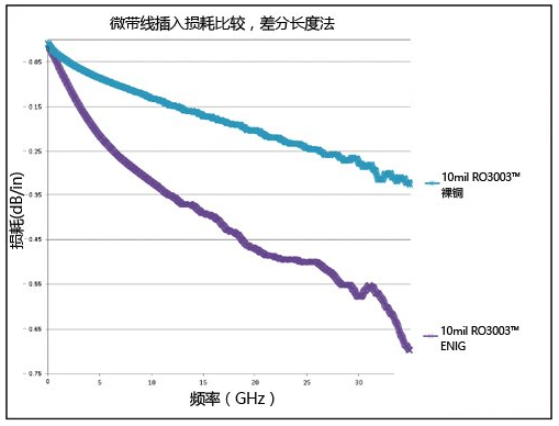 使用 ENIG 表面处理的电路插入损耗比裸铜结构电路高。