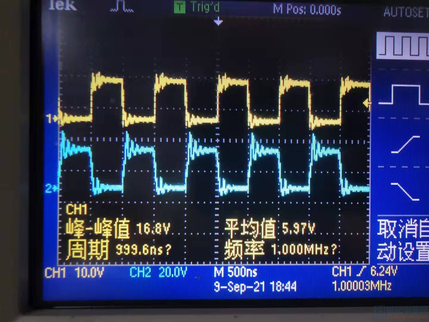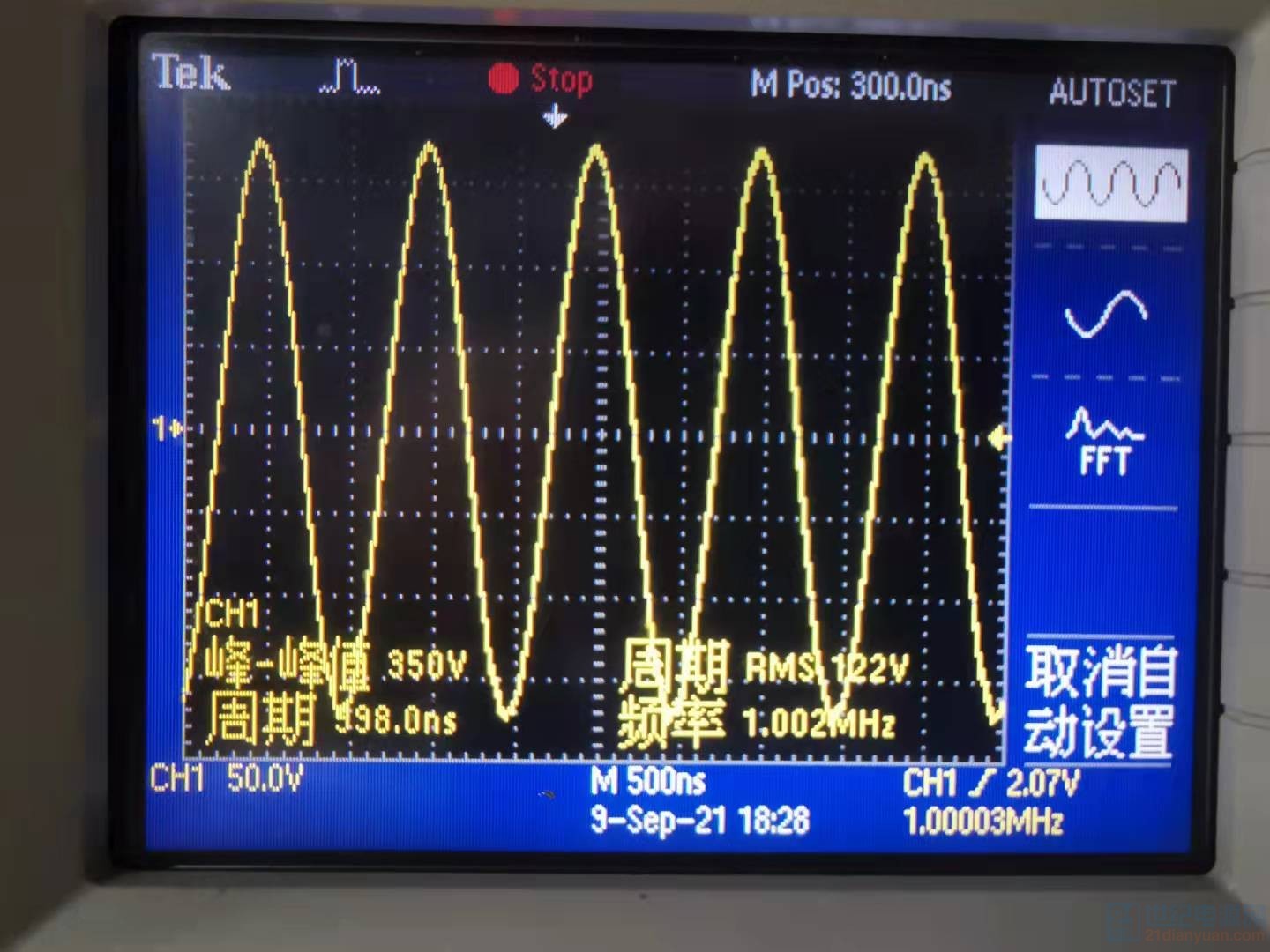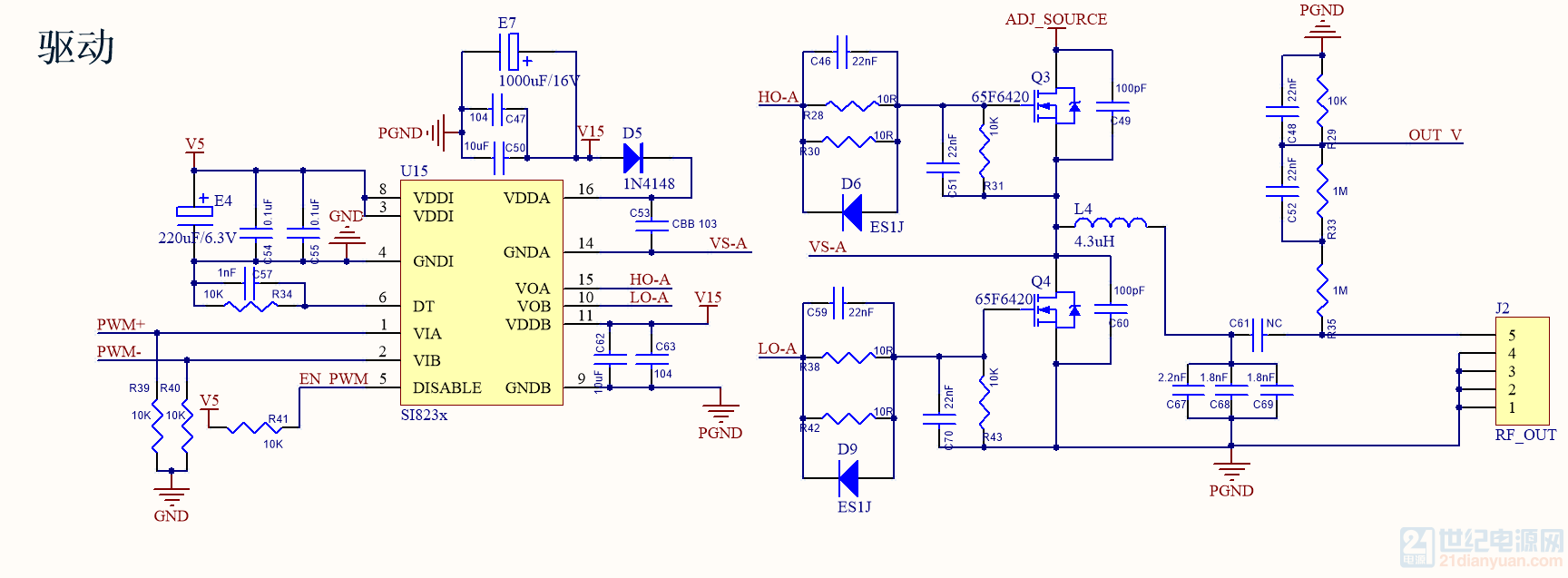 最后一张图为半桥的G极波形输入15V,最大电流5A,功率75w如果50欧姆的电阻输出350V,需要7A的电流。