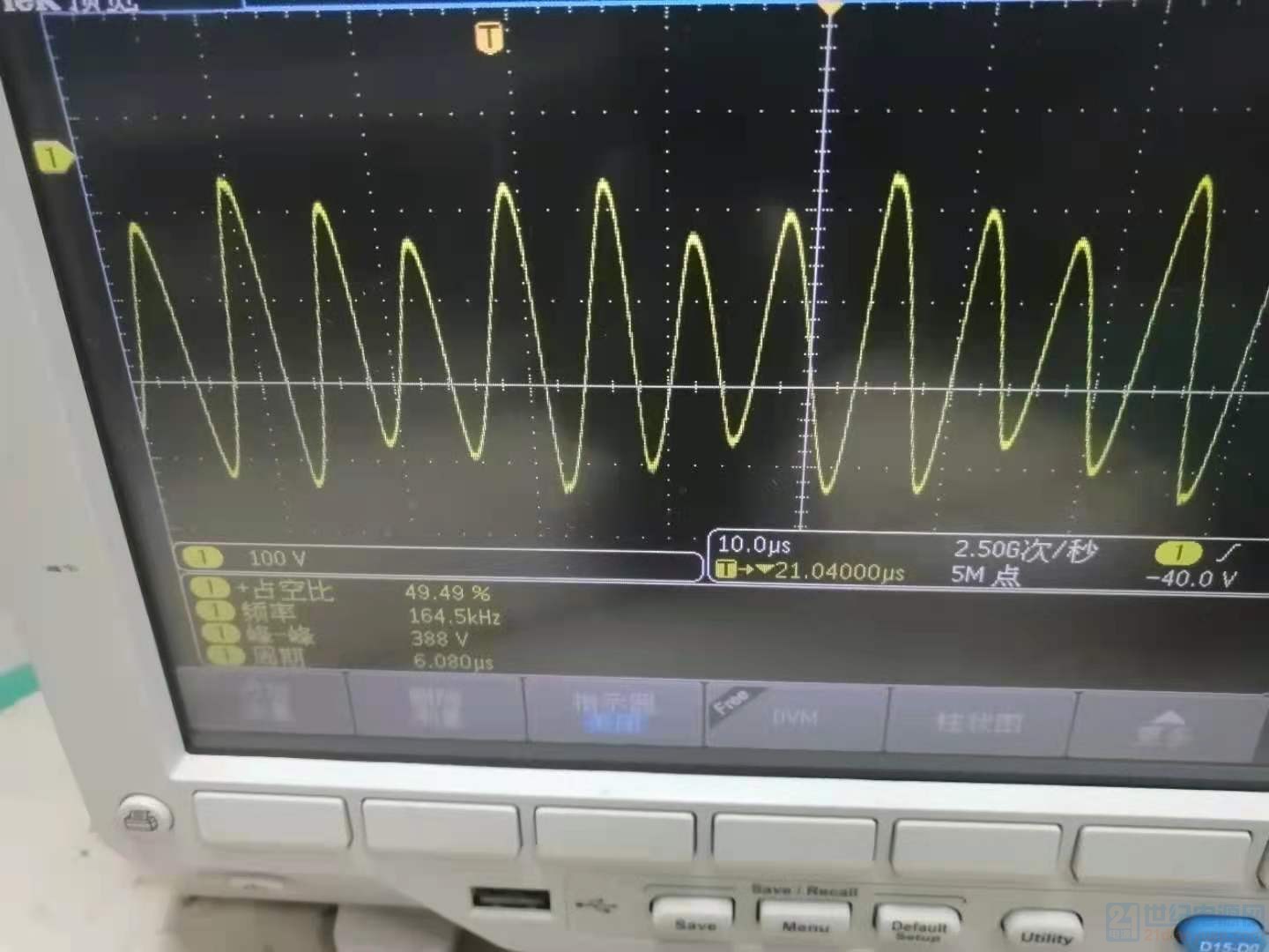 示波器接地有问题吧? 怎么是歪歪斜的不规整。